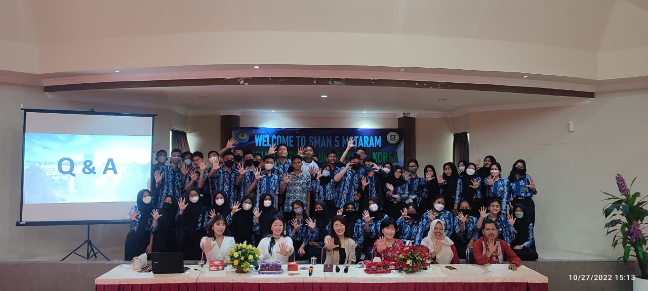SMAN 5 Mataram berkomitme menfasilitasi peserta didik melanjutkan pendidikan ke perguruan tinggi terbaik baik didalam negeri maupun luar negeri. Salah satu upaya yang dilakukan dengan menghadirkan pihak Chonnam Nasional University (CNM) dari Korea Selatan.