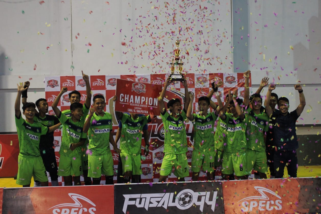 Mataram- Tim Futsal SMA Negeri 5 Mataram (SMALA) berhasil menjuarai Kejuaraan Antar Pelajar Specs Futsalogi 2018. Pada final yang digelar di Sport Hall GOR 17 Desember Mataram, Sabtu (29/7), Tim Futsal Smala berhasil mengkandaskan Tim Futsal SMAN 2 Pr...