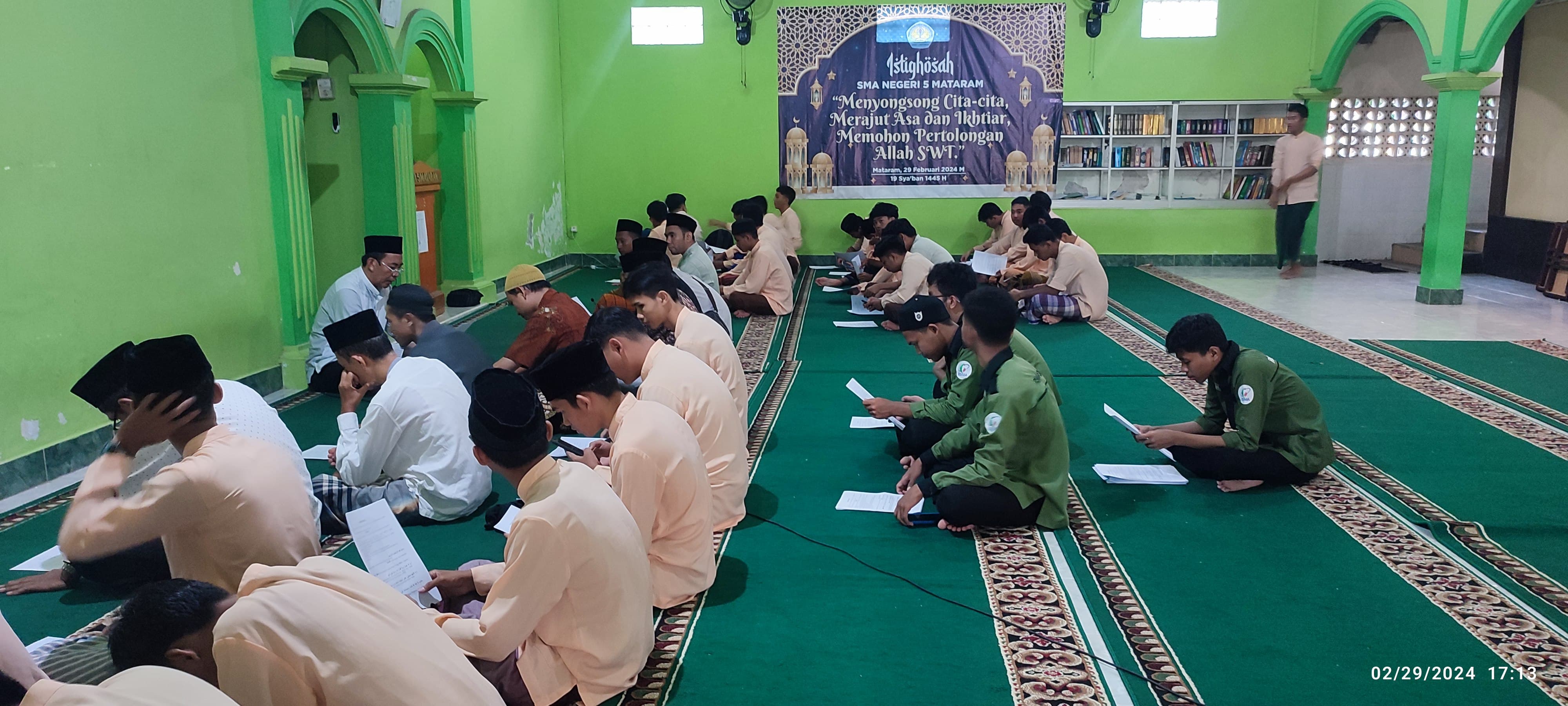 SMAN 5 Mataram pada hari kamis, 29 februari 2024 menggelar Istighosah dan doa bersama di Masjid Al Mujahidin SMAN 5 Mataram, Istighosah dan doa dengan tema “menyongsong cita-cita merajut asa dan ikhtiar, memohon pertolongan Allah SWT” bersama ini bertujuan...