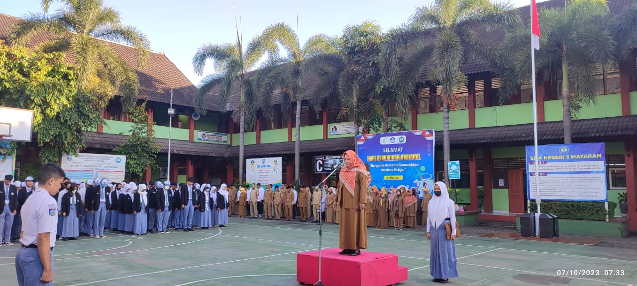 Mataram (10/7). SMAN 5 Mataram (Smala) melaksnaakan upacara bendera perdana untuk menyambut tahun pelajaran baru 2023/2024. Tepat pada hari ini, Senin 10 Juli 2023 siswa masuk setelah libur smester Genap tahun pelajaran 2022/2023. Untuk memulai pembelajaran tahun pela...