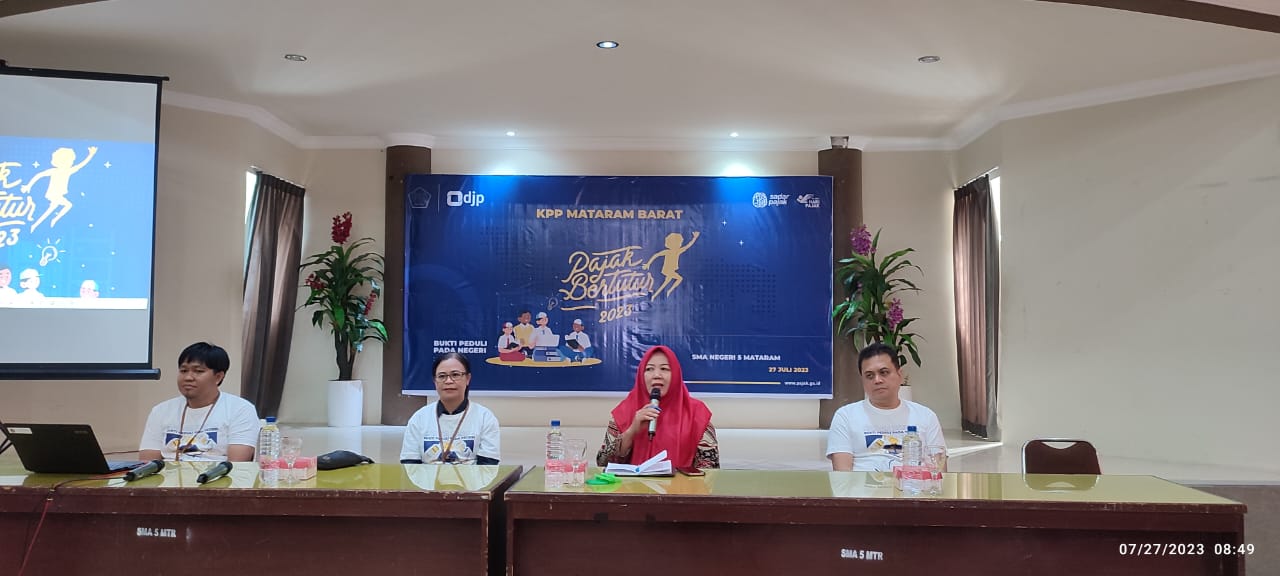 Guna mengedukasi tentang pentingnya kesadaran peran pajak sejak dini, Kantor Pelayanan Pajak Pratama Mataram bekerjasama dengan SMA N 5 Mataram mengadakan bimbingan bertemakan “Pajak Bertutur”. Bertempat di Aula SMAN 5 Mataram, acara berlangsung Selasa,(27...