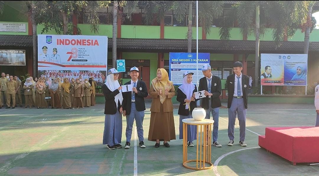 OSIS SMA Negeri 5 Mataram melaksanakan pencabutan nomor urut pasangan calon ketua OSIS dan wakil ketua OSIS masa bhakti 2023/2024.