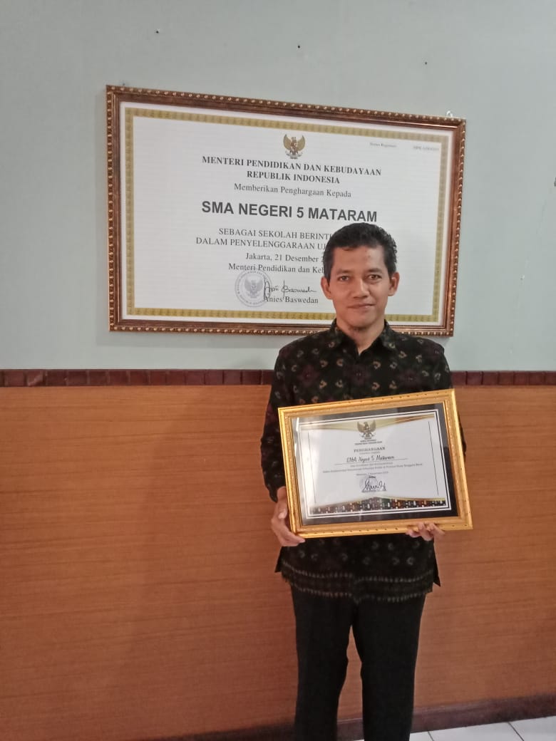 Mataram- Komisi Informasi (KI) Provinsi Nusa Tenggara Barat menggelar Penganugerahan Keterbukaan Informasi Publik kepada badan publik/PPID/OPD se-NTB di Hotel Lombok Raya Kamis (10/10/2019). Dalam acara ini, SMAN 5 Mataram berhasil meraih penghargaan atas Komitmen dan Konsistensinya dalam Implementasi Keterbukaan Informasi Publik. Kepala SMAN 5 Mataram, Drs. H. Arofiq,MM, yang menerima langsung penghargaan tersebut mengaku tidak kaget dengan penghargaan dari Komisi Informasi NTB ini. “Penghargaan ini merupakan penghargaan bagi seluruh keluarga besar Smala atas keistiqohannya dalam menjaga kepercayaan masyarakat” imbuh beliau.